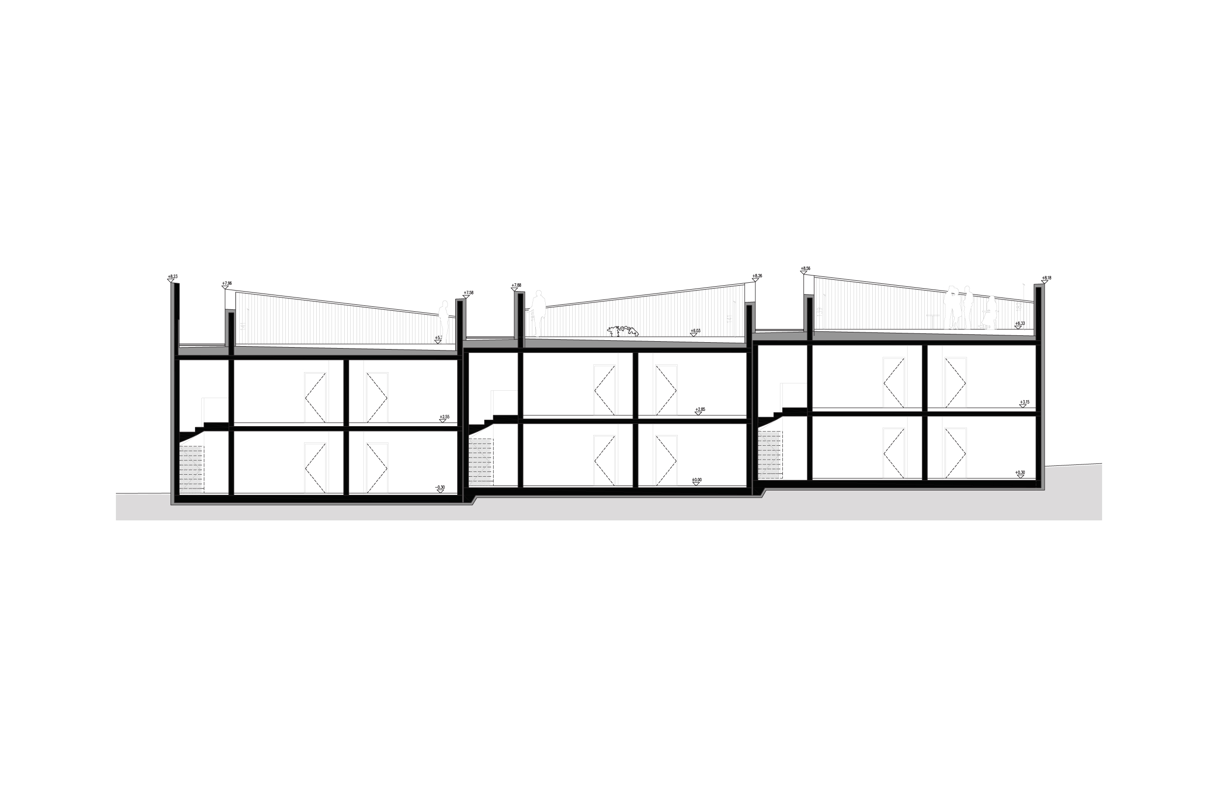 Bryła została podzielona na 3 niezależne elementy, a przestrzeń miedzy nimi zajęła komunikacja. Prostota formy, bo postawiliśmy na funkcje.