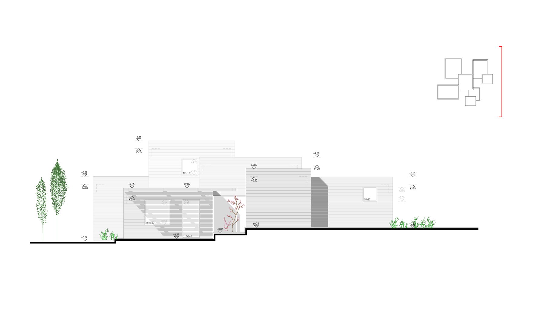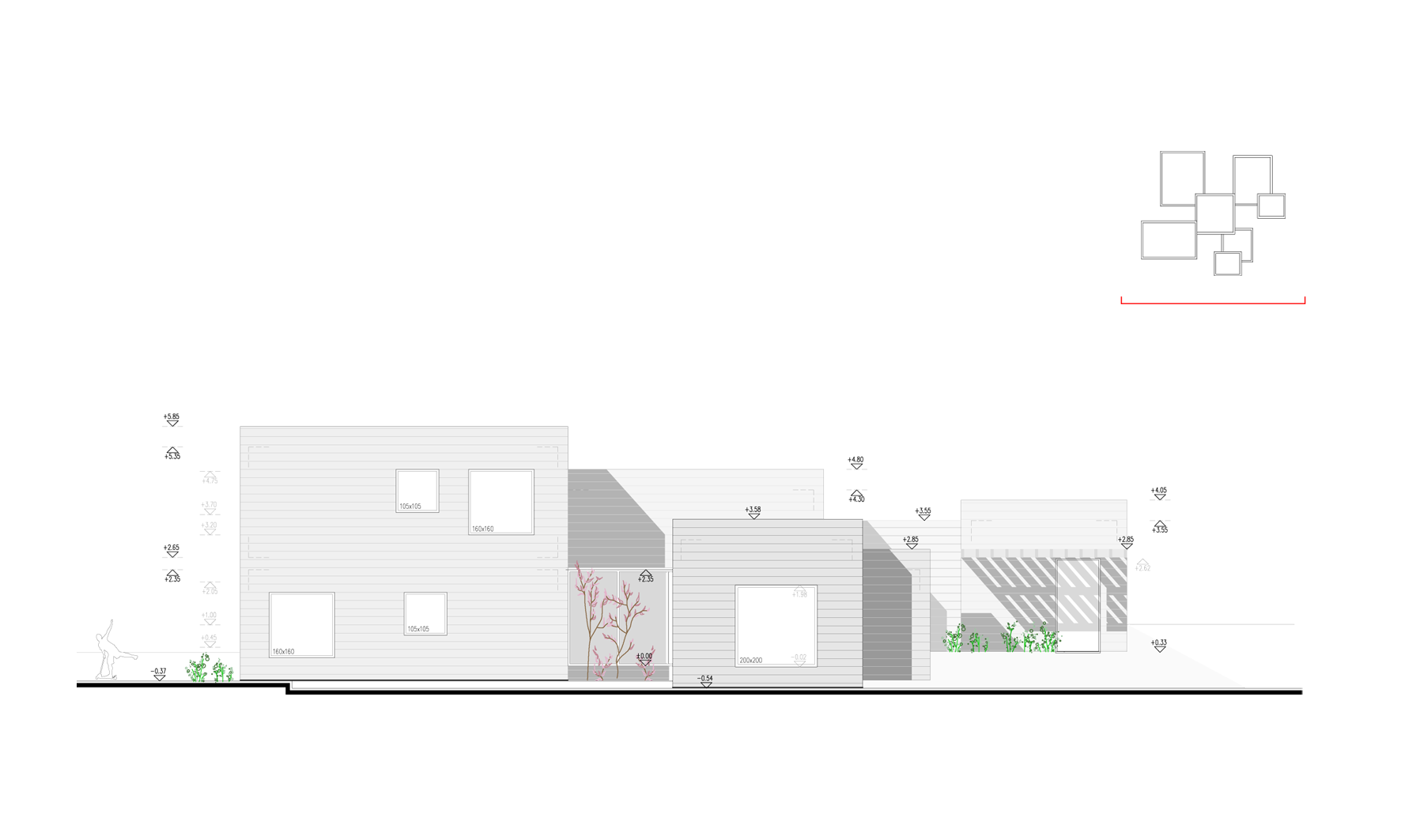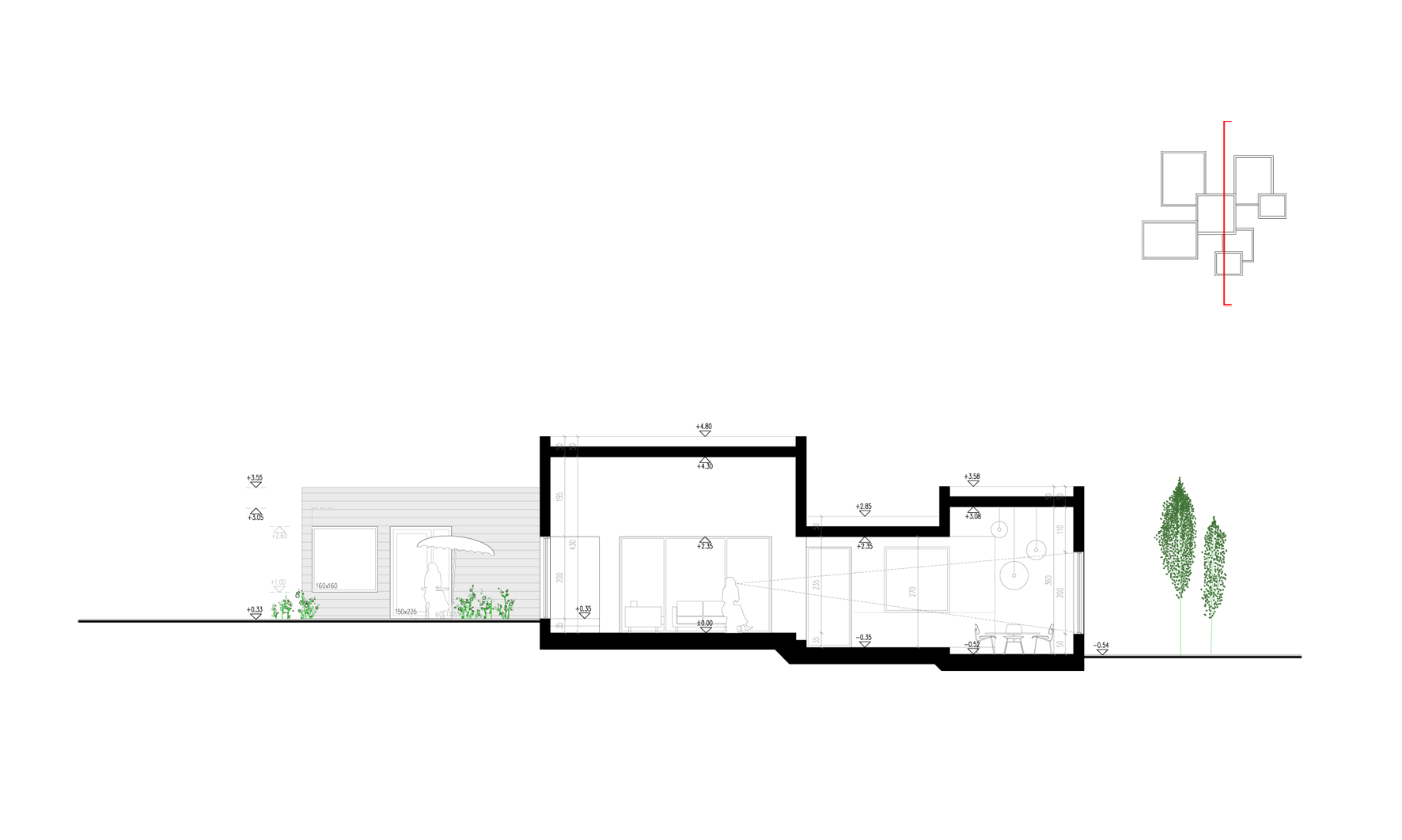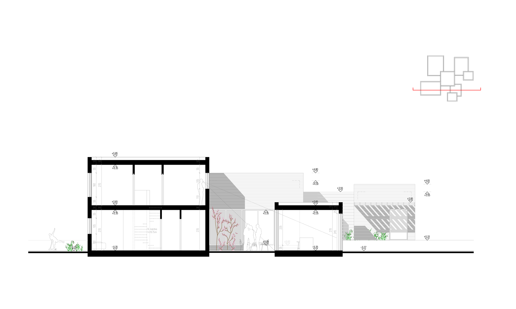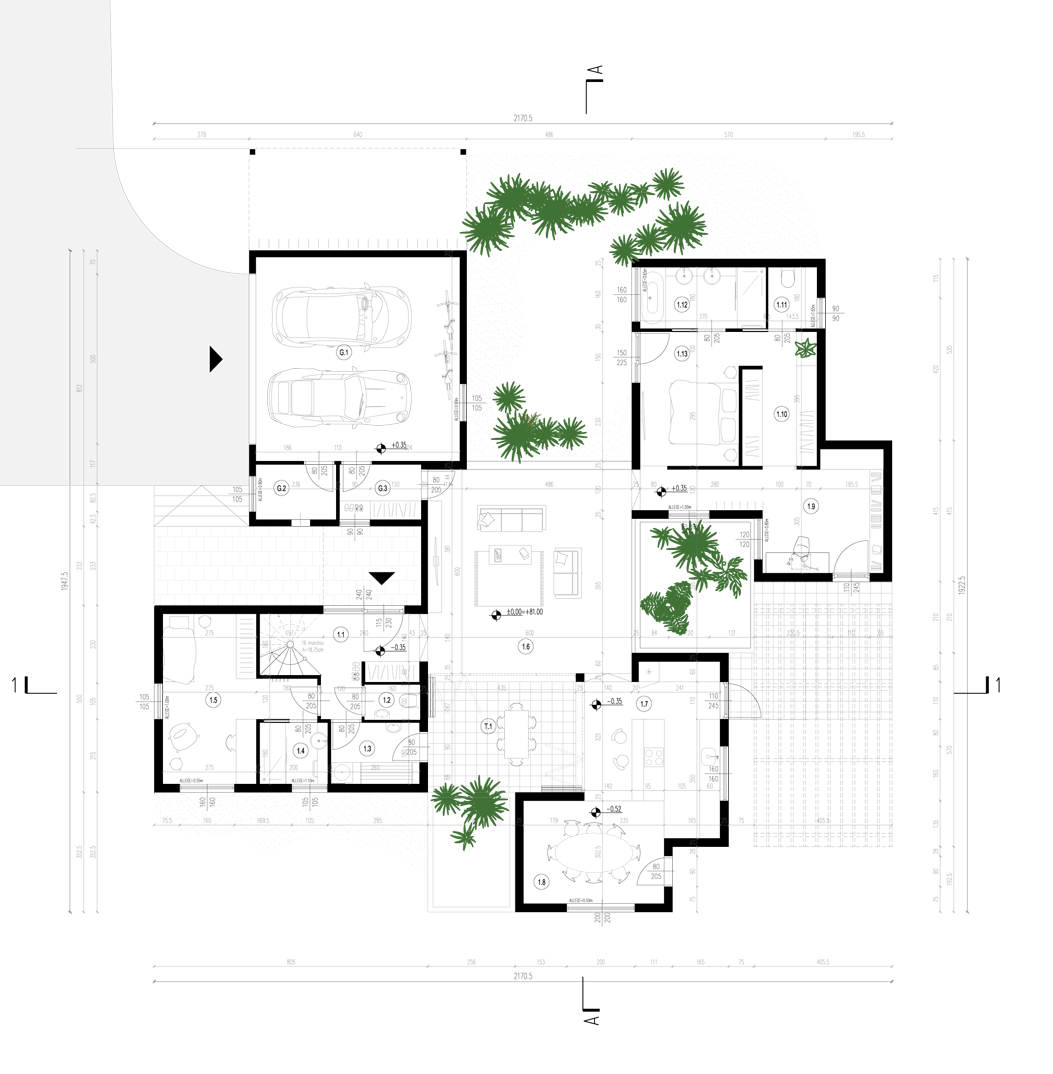 Rozłożenie funkcji dało życie 3 Atriom: tarasu użytkowego, ogrodu rodziców oraz ogrodu z kompozycją kwiatów i drzew.
